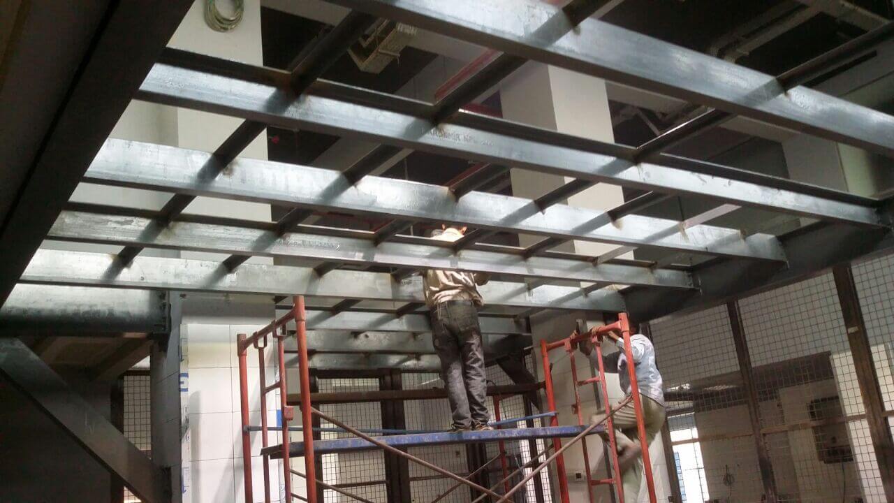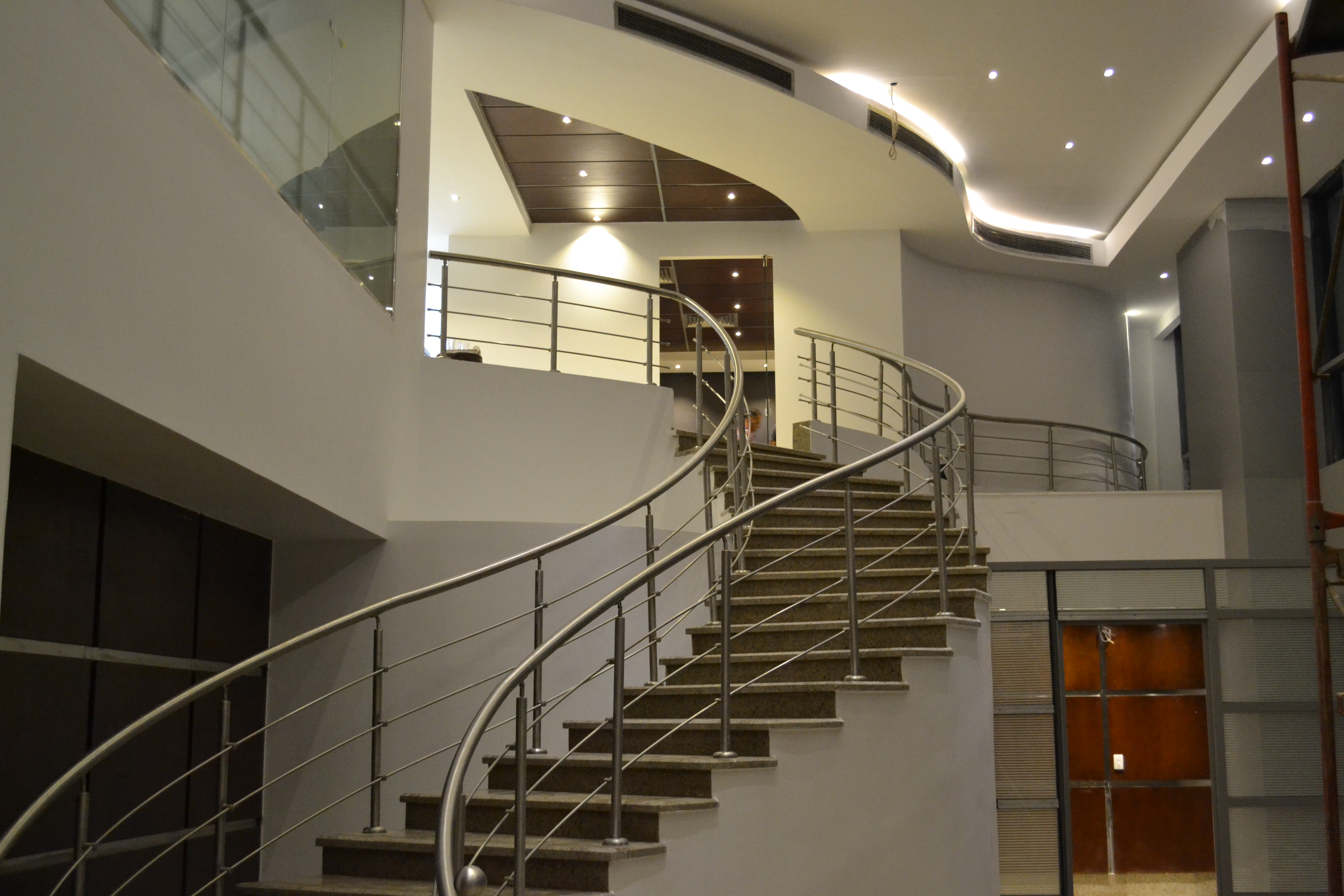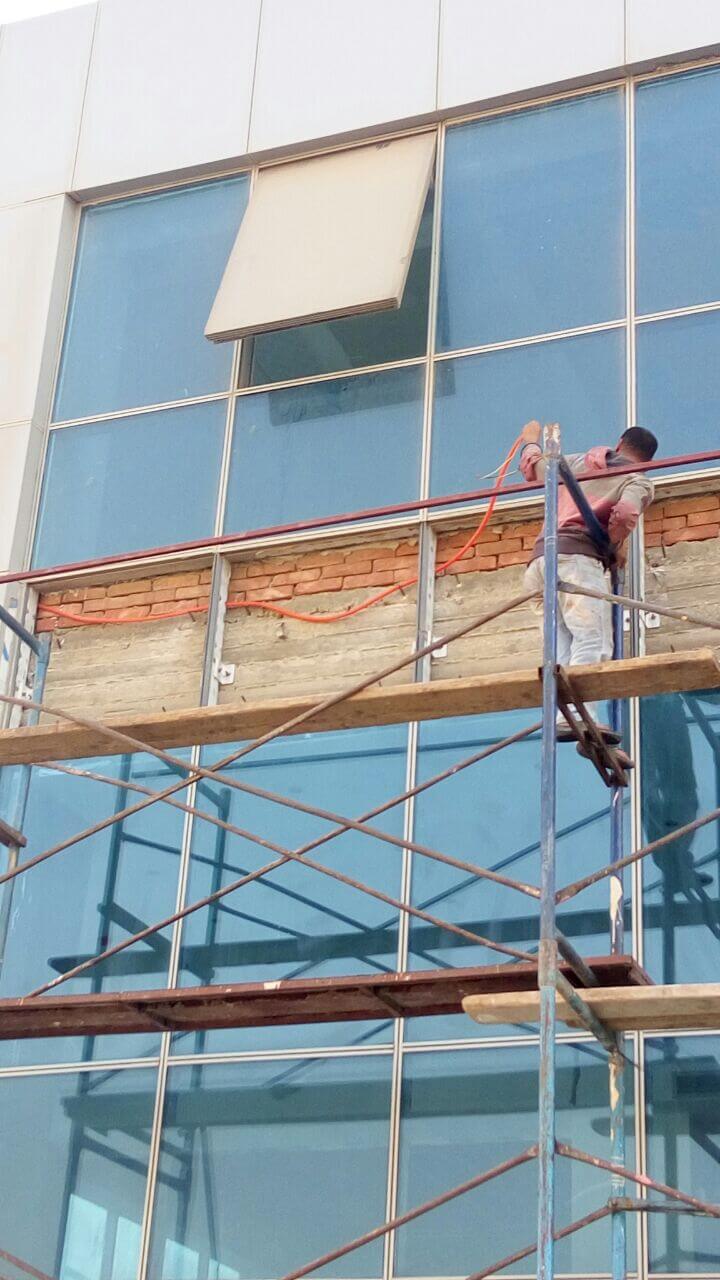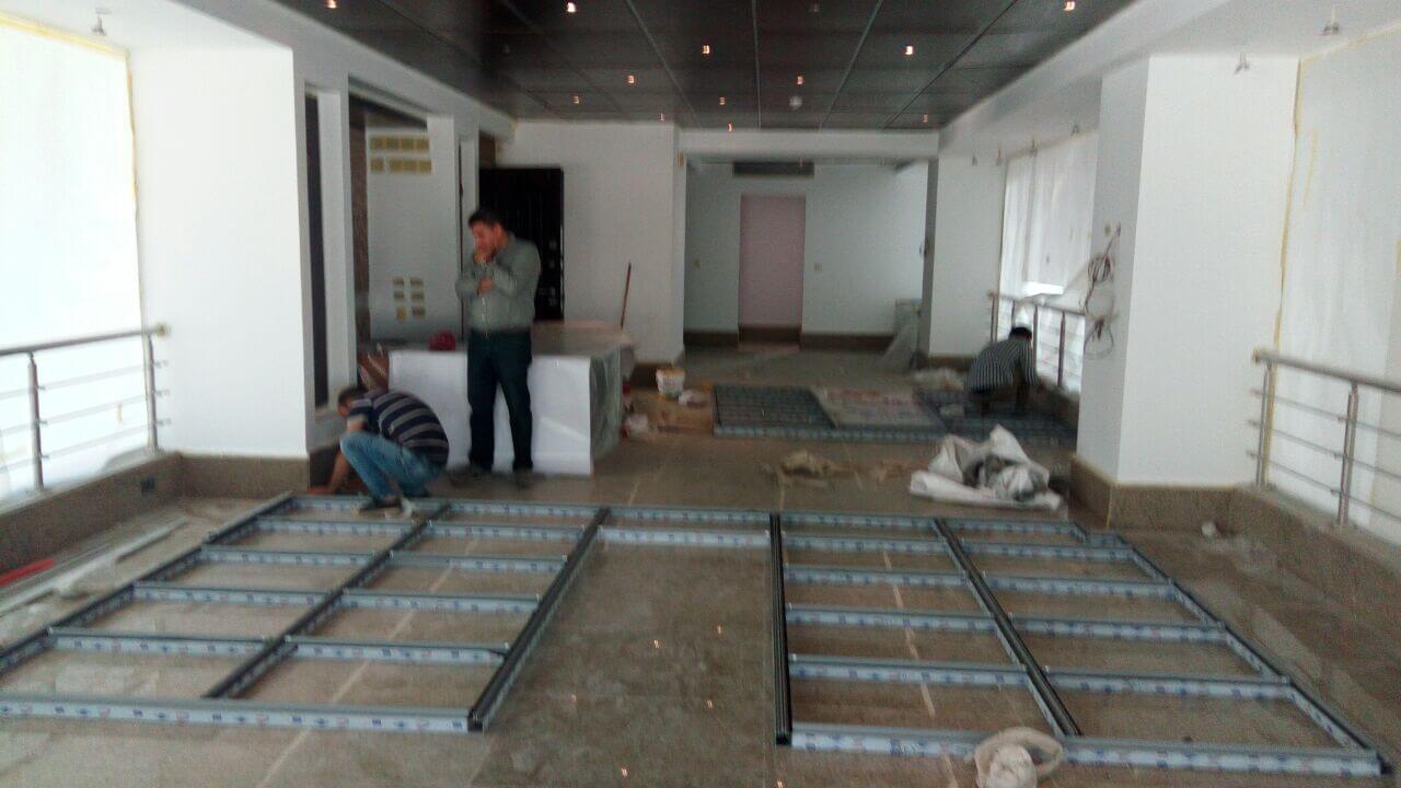 Curtain wall partitions. Furnishing included : Fabrication & Supply of : Reception desk,Meeting room table, Manager desks, Cubicals, desk chairs, waiting area furniture.